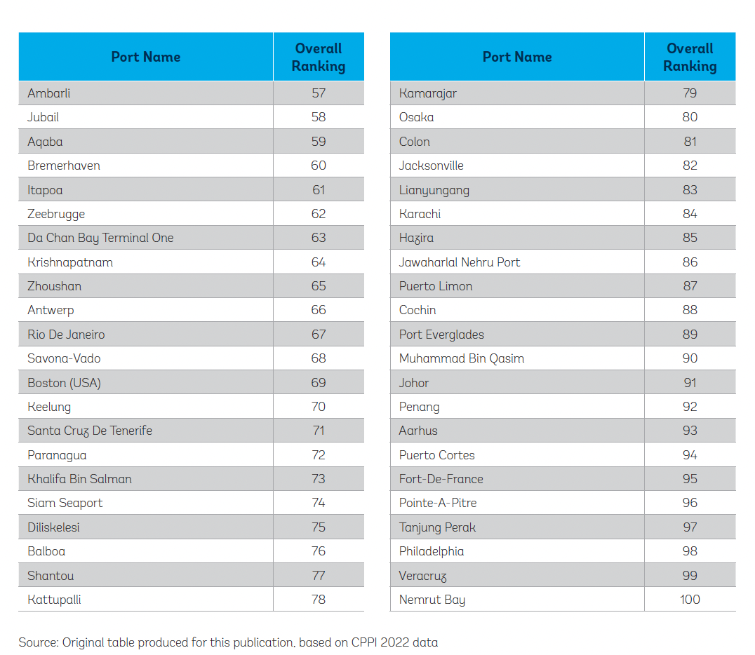 附:cppi 2022排名前100位的集装箱港口