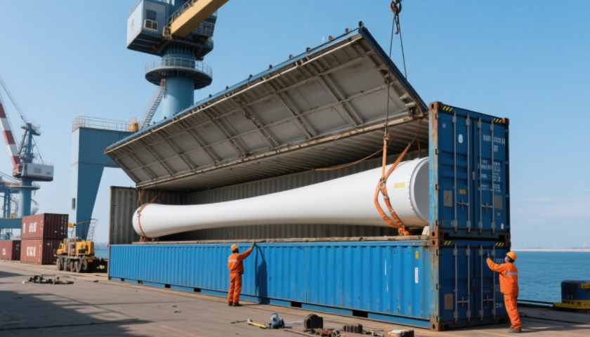 开顶柜,顾名思义,顶部可开启,这一创新设计为超高、大件货物的运输带来了极大便利。以往,面对大型机械设备、风电叶片、超长钢材等超出普通集装箱尺寸限制的货物,运输往往面临诸多困难,要么需对货物进行拆解,增加成本与风险,要么只能寻求昂贵的特种运输方式。如今,开顶柜海运的出现改变了这一局面。例如,在风力发电项目中,长达数十米的叶片通过起重机可直接从开顶柜顶部装入,无需复杂拆解,大大提高了运输效率,保证了项目建设的物资供应。?